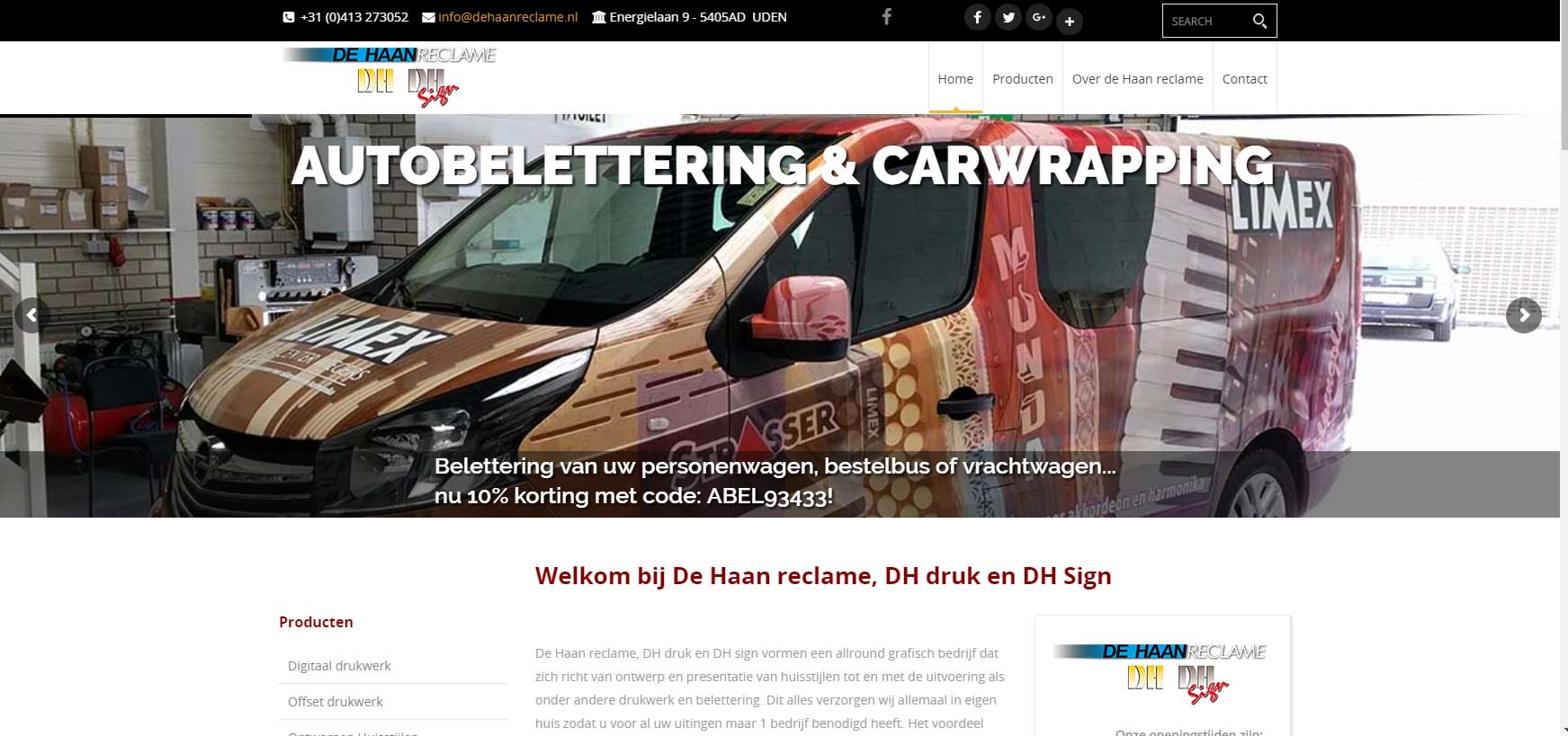 Voor een afspraak: e-mail: info@dehaanreclame.nl
